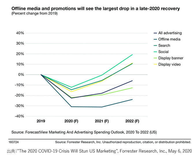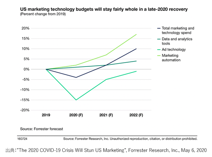 米国の調査機関であるForrester社が、コロナによって企業のマーケティングへの投資がどのように影響を受けるかを予測した、レポートを発表しました。