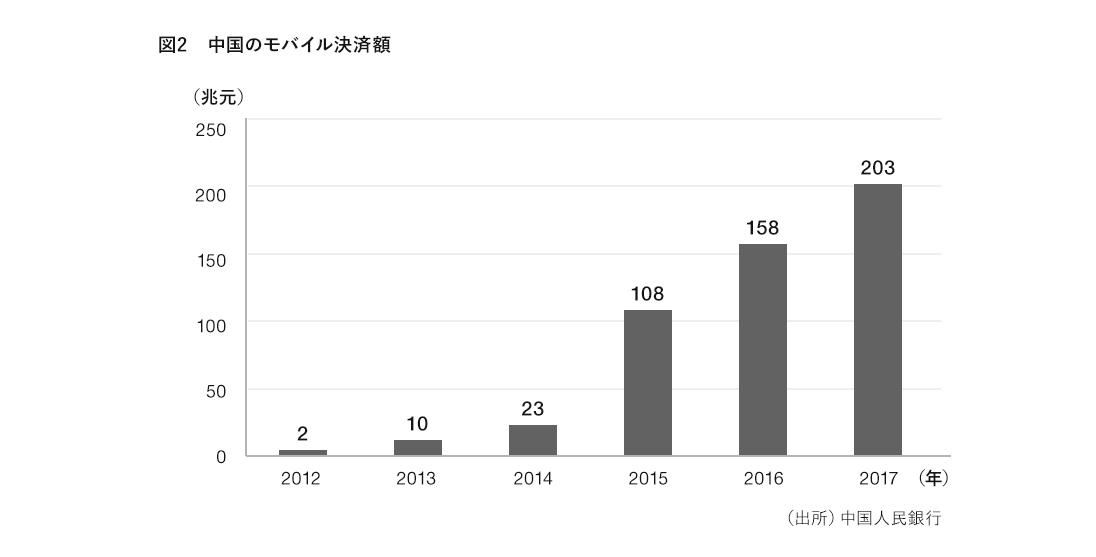 では、なぜ中国においてキャッシュレス(モバイル決済)が浸透したのでしょうか?中国のモバイル決済は2013年を機に右肩上がりで急激に普及しています。(図2)これは、中国において格安スマホが普及したことと、利便性の高いアプリが登場したことが要因になっています。それまでは、AlipayやWeChat payなどの第三者決済サービスがモバイル決済対応をしていましたが、利用者の大半がPCで利用していたため、普及には至りませんでした。格安スマホの普及とともに、アプリ自体を決済だけでなく、スーパーやコンビニ、百貨店でも利用できるようにし、消費者の生活に密着した便利で分かりやすい金融サービスに切り替えたことから、利便性が格段にあがり、取引額も増え、生活に深く浸透していきました。