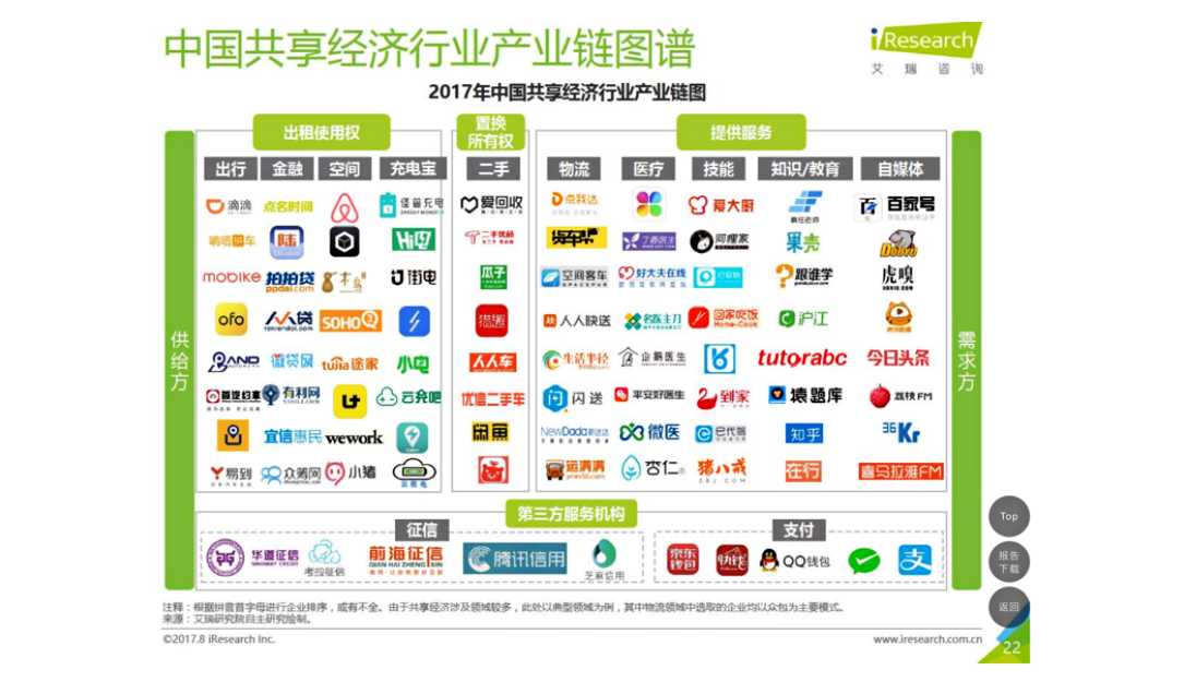 中国でも、ライドシェアや自転車シェアリングの普及によって、国民の間にシェアリング(共享)という考え方が、浸透しています。下記の図3は、中国で展開しているシェアサービスの種類です。業界問わず幅広く、激しい競争で淘汰が行われています。