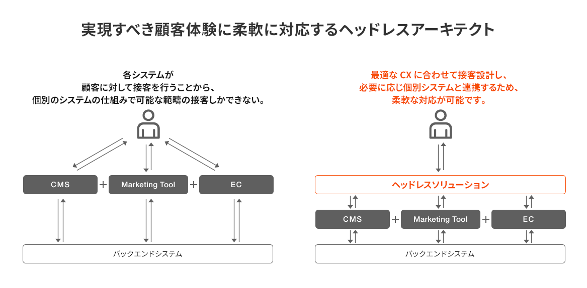 そして、「より良い顧客体験を提供するために、柔軟なシステム構成を実現する。こういった点で、ヘッドレスソリューションの導入は非常に有効な考え方だ」としました。