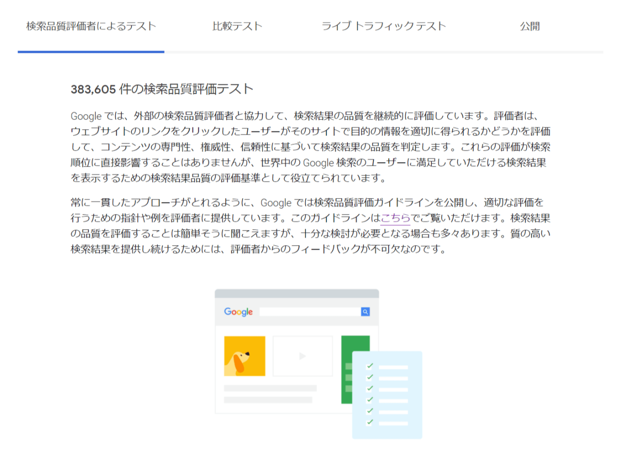 1. ^ "公式アルゴリズムの品質評価テスト: アイデアから実用化まで". Google 検索サービス公式サイト(2017年2月)2020年10月23日閲覧。2020年10月時点では存在しないため、Internet Archiveより引用。