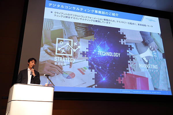 デジタルトランスフォーメーションの実現には、テクノロジーの戦略的活用が不可欠だ。しかし導入には特有の壁が立ちはだかる。デジタルトランスフォーメーション部門 デジタルコンサルティング事業部 事業部長の高田晴彦が、その壁を乗り越えるアプローチを紹介。マーケティングとテクノロジーを融合する方法論を示した。