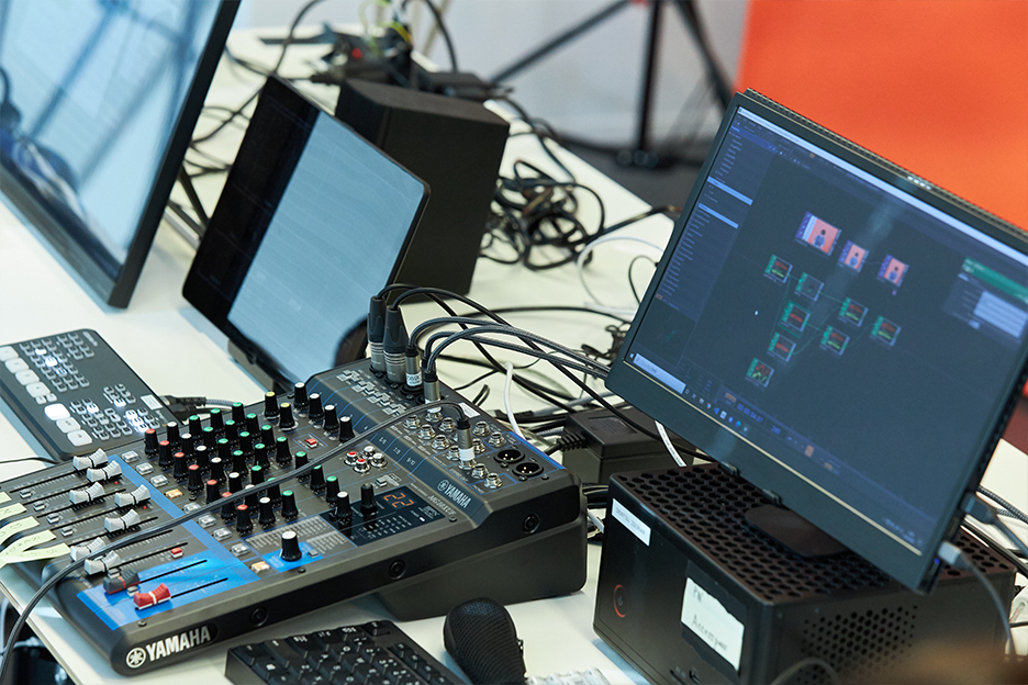 「デバイスを制御するパッチがたくさんあるので、制御すべき機材が多くなりがちなウェビナーの配信システムを構成するには最適」と、川村が強調する「TouchDesigner」。 このソフトウェアのおかげで、構想からおよそ1ヶ月でアイソバースタジオを開設できた、とも言えます。