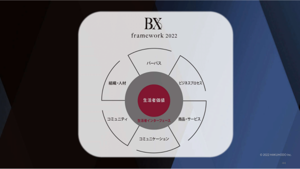 「生活者体験を変革するには、組織・人材、パーパス、ビジネスプロセス、コミュニティ、コミュニケーション、商品・サービス、これら全部を変革しないといけません。生活者価値を中心に置き、事業全体を変革することが大事だと思っています」