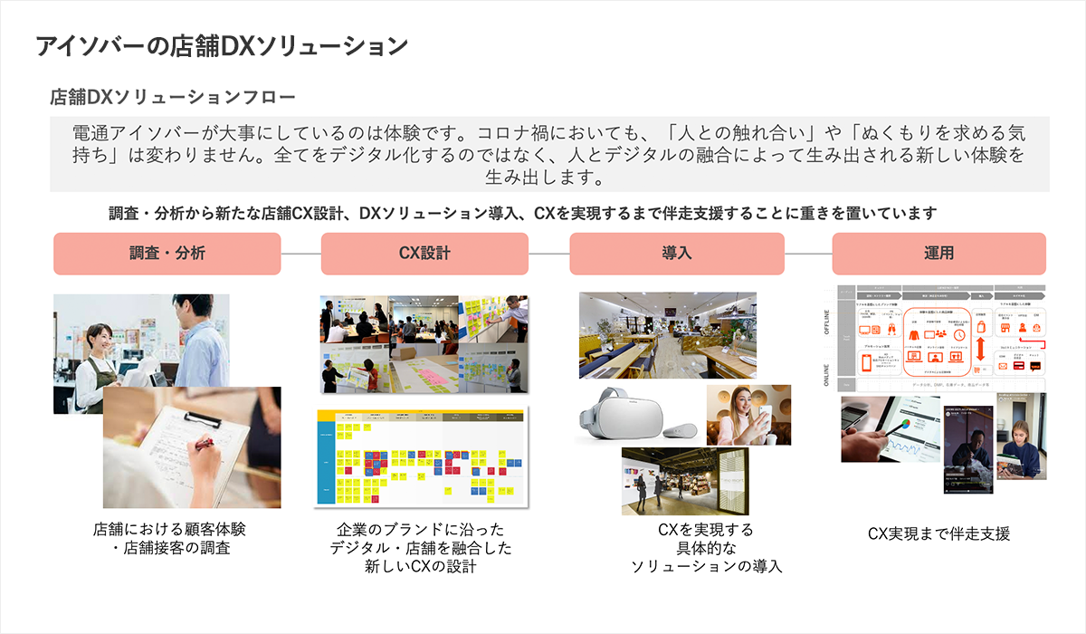 こうしたサービスの融合や新たな顧客体験の創出を実現するために、電通アイソバーではさまざまな店舗DXソリューションを提供している。