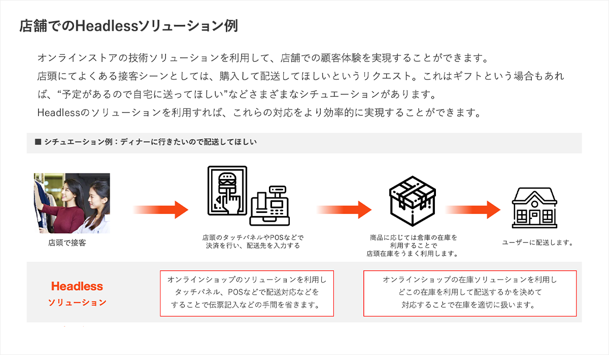 「Headlessソリューションを活用して、店頭での簡易なDX導入から始めながら、徐々にDXを適用するシチュエーションを拡張し、柔軟に連携していくことによって、より良い顧客体験を実現できます」(門別氏)