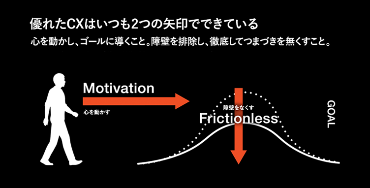 優れたCXを概念化すると「Motivation」と「Frictionless」が存在する