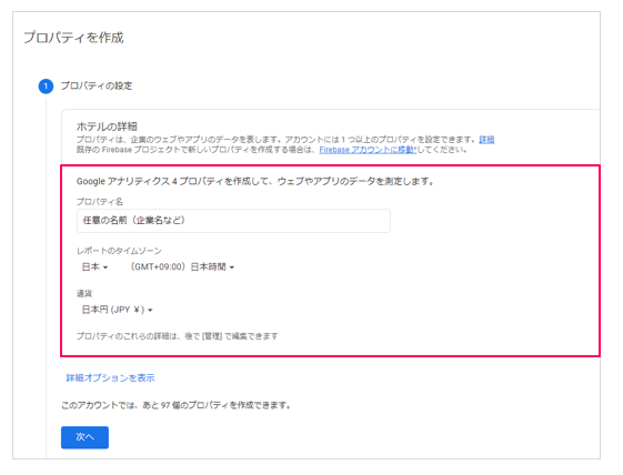 記入が終わったら[作成]をクリックします。これでプロパティの作成は完了です。
