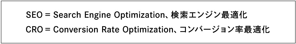 好村:CROとは、Conversion Rate Optimization、コンバージョン率最適化のことです。検索順位を上げるためのSEO(検索エンジン最適化)は日本でも広く知られていますが、よりダイレクトに売り上げに寄与するCROについては、デジタルマーケティングに関わる人たちの間でも、まだあまり理解が進んでいないように思います。