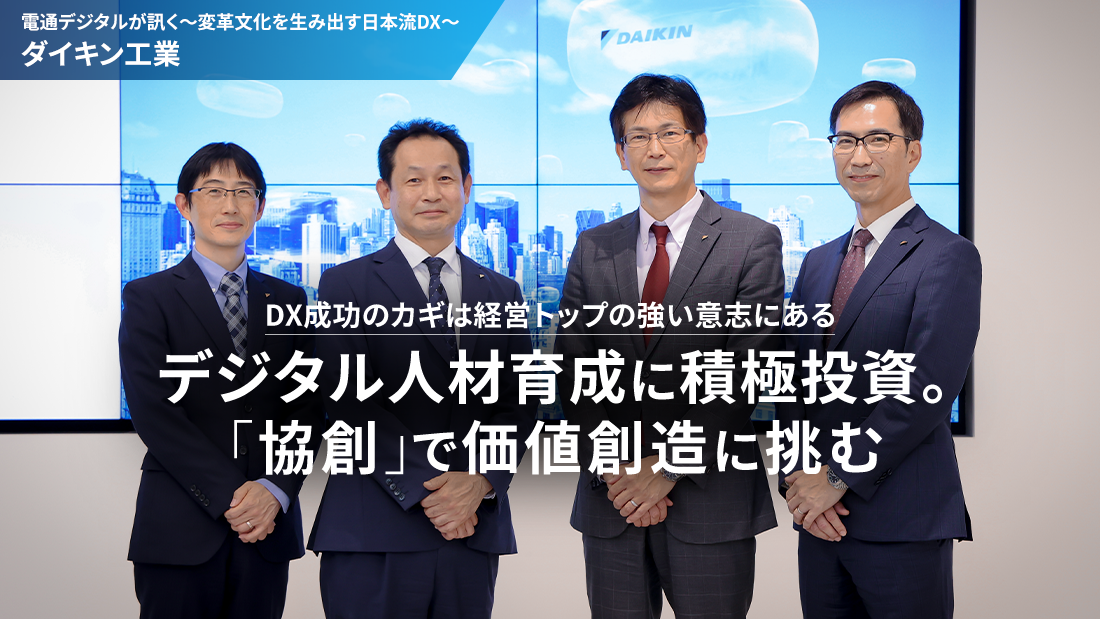 DXの本質は、継続的な事業成長に向け、あらゆる変革を取り入れていく土台をつくること――。DXによる組織変革を実現する国内企業に電通デジタルがインタビューをし、成功のカギを探る「変革文化を生み出す日本流DX」。第1回は、早期からトップダウンでデジタル活用による事業変革に挑み、2022年3月期には最高益を更新するなど、持続的な成長を続ける空調世界最大手のダイキン工業に、電通デジタル副社長執行役員の小林大介氏が迫った。
