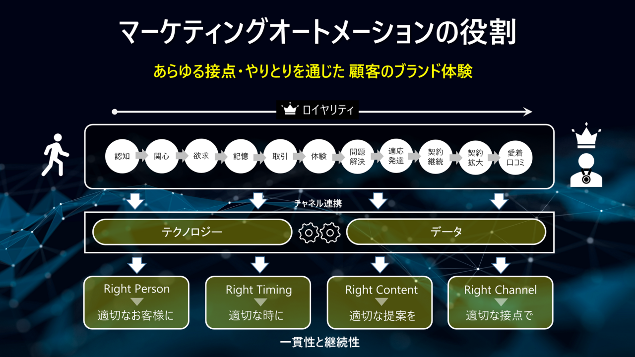顧客体験を向上させるテクノロジーであるMAを使うことで、適切なタイミングに、適切な提案を、適切な接点で行うことができます。