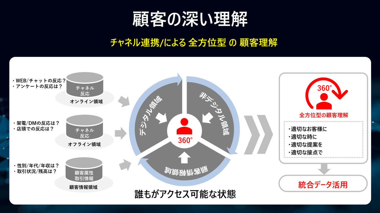 顧客を深く理解するには、「チャネル連携による全方位型の顧客理解」がポイントです。