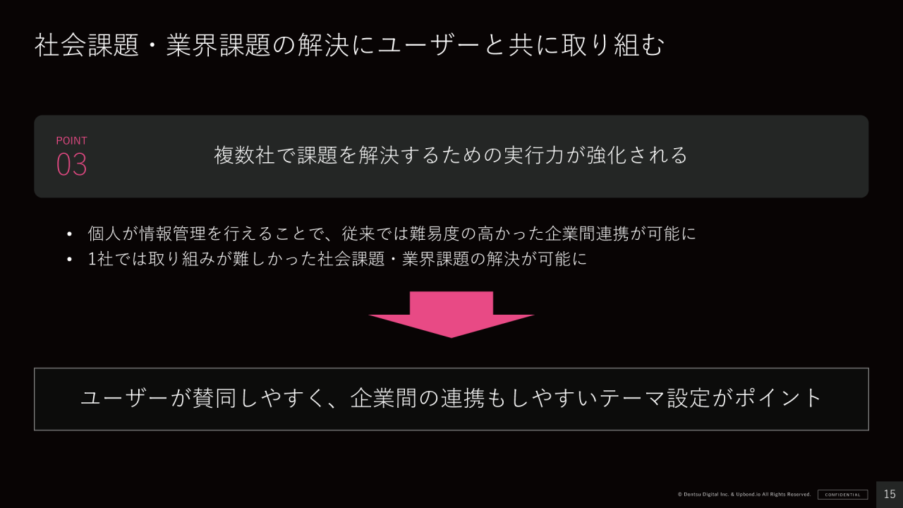 岡田 : ユーザーが賛同しやすく企業間の連携もしやすいテーマ・課題を設定することが、重要なポイントになりそうです。