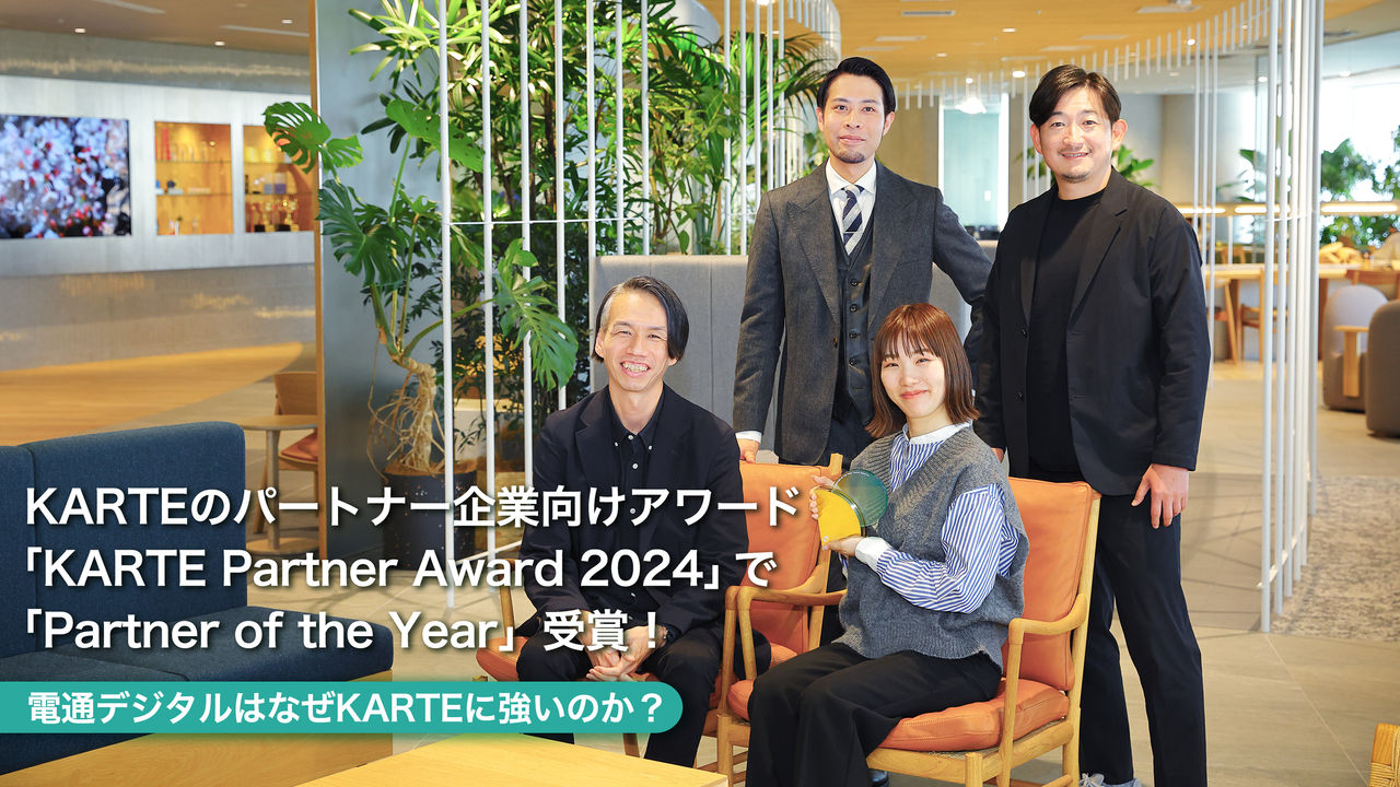 2024年3月29日、株式会社プレイド主催の「KARTE Partner Award 2024」において、電通デジタルは「Partner of the Year」を受賞しました。プレイドのアライアンスチームのお二方と、電通デジタルのプランニング・導入担当者2人に、受賞理由と両社の取り組みについて聞きました。