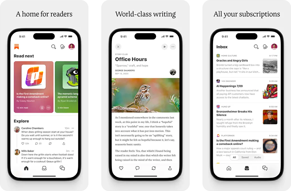 もう一つは、「Substack」という、メールマガジンの配信・購読のサービスです。「Substack」はアメリカの企業が2017年にサービスをリリースし、iOSのアプリは2022年にリリースされました。