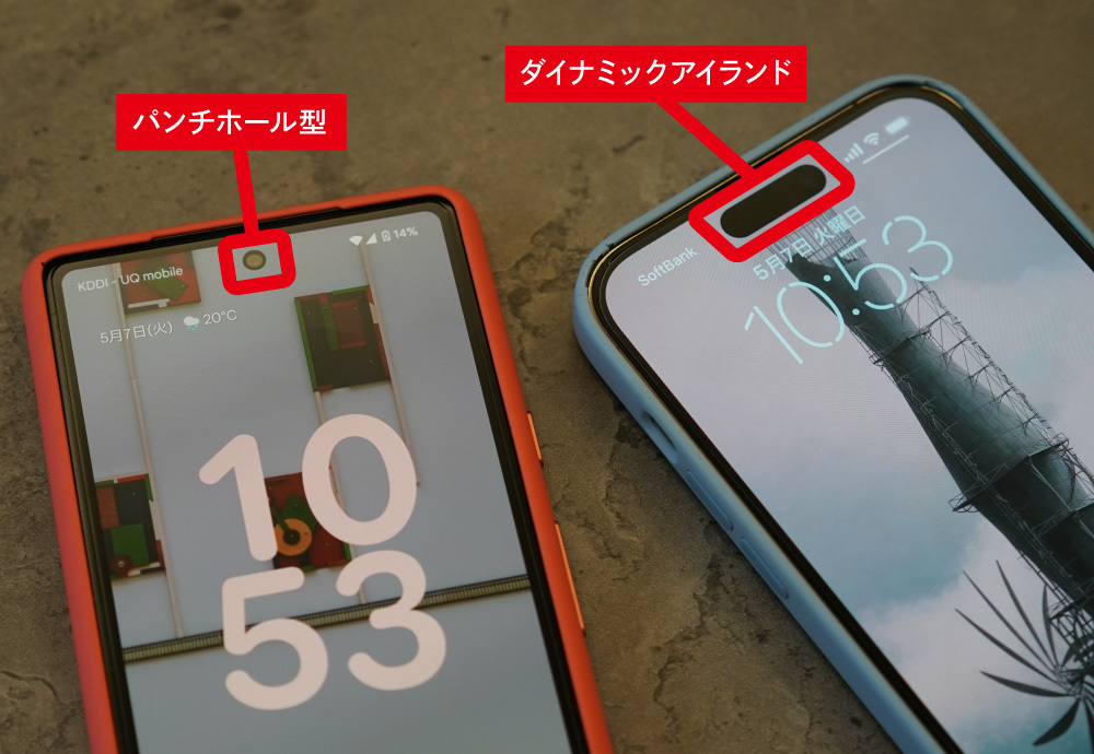 また、スマホの内側のカメラが搭載される位置も変わり、昔はノッチ型と呼ばれるデザインが多かったのですが、最近はパンチホール型が主流となってきました。特に最新のiOSデバイスでは、カメラのパンチホール部分に「Dynamic Island(ダイナミックアイランド)」という表示スペースが設けられました。iOS16.1から「ライブアクティビティ」機能が追加され、進行中のアプリ情報をロック画面から確認できるようになったり、Dynamic Island上に表示することができるようになったりしました。