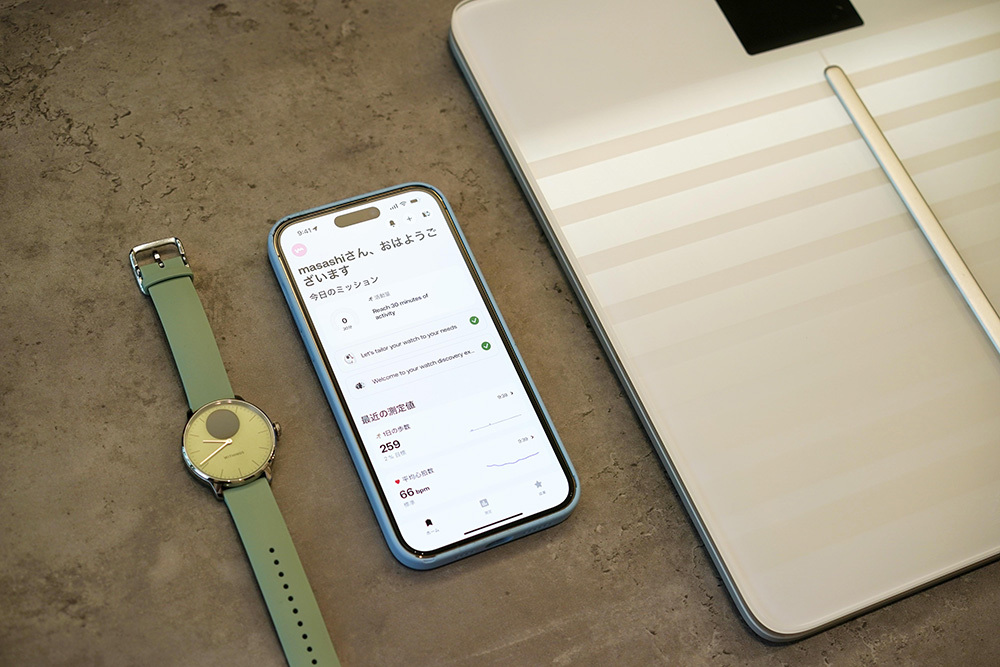 「Withings」は、腕時計と体重計それぞれから取得したデータを一つのアプリでチェックできる。