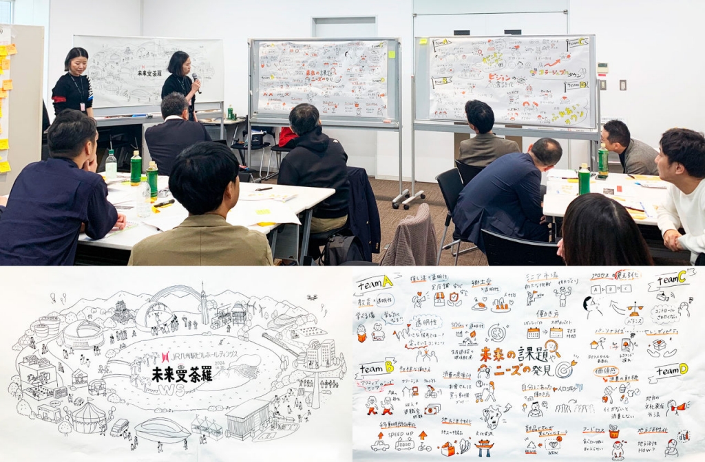 吉田:九州各地の主要な駅ビルビジネスの営業現場を担う方々も参加されていたので、ワークショップの中で生まれたアイデアを社内に持ち帰り、共有・浸透させるにはビジュアルで伝える方法が効果的だと判断しました。