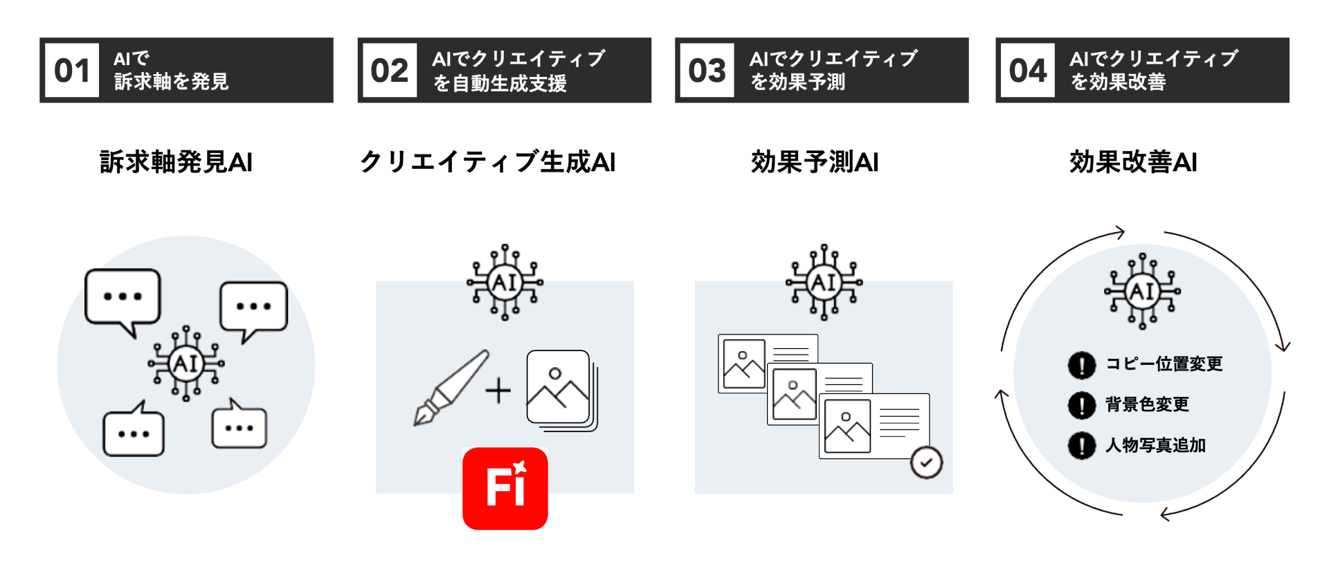 具体的な連携事例として、電通デジタル提供のAIソリューション「∞AI Ads」があります。今後リリース予定のバージョンでは、これまでの訴求軸の設定や生成、効果予測、改善提案に加え、Adobe FireflyやPhotoshopのAPIを活用してバナー生成も自動化できるようになります。これはまだ部分的な連携となりますが、今後はコンテンツサプライチェーンを横断したソリューション連携を構想しています。