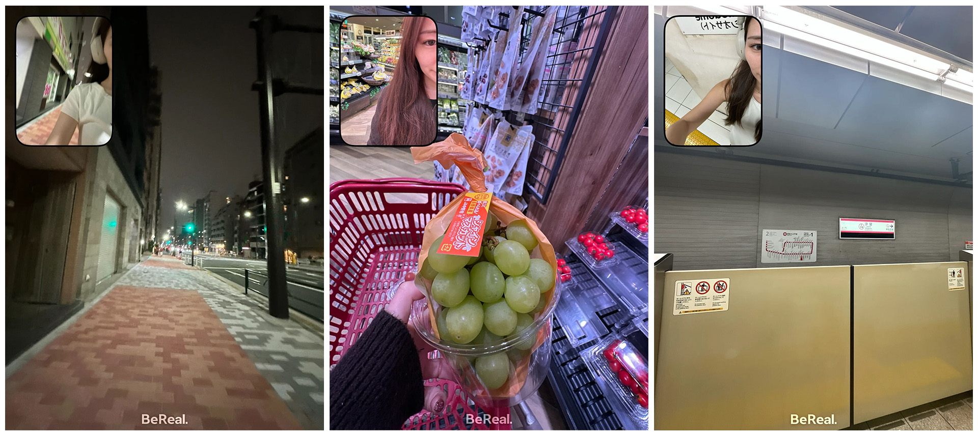 投稿にはフィルターや加工機能がなく、過去写真のアップロードも不可。まさに「その時・その場所」で撮った1枚だけが投稿できる仕様です。この構造が「同じ時間を、違う場所で共有する」という新しいソーシャル体験を生み、従来のSNSにはない、素の生活の共感を促しています。