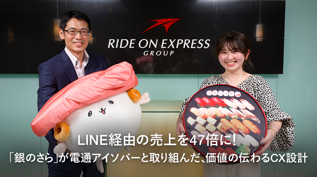 近年の企業と顧客のコミュニケーションにおいては、クーポンの配布などを通じた従来のプロモーションだけでなく、宣伝の枠を超えた顧客体験がますます重要視されている。ライドオンエクスプレスの宅配寿司ブランド「銀のさら」では、電通アイソバー(現電通デジタル)の協力を得ながらLINEを通じた顧客体験価値の向上に取り組み、LINE公式アカウント経由の売上を他のチャネル以上に伸ばしたという。両社の担当者にその成長の背景と具体的な戦略について話を聞いた。