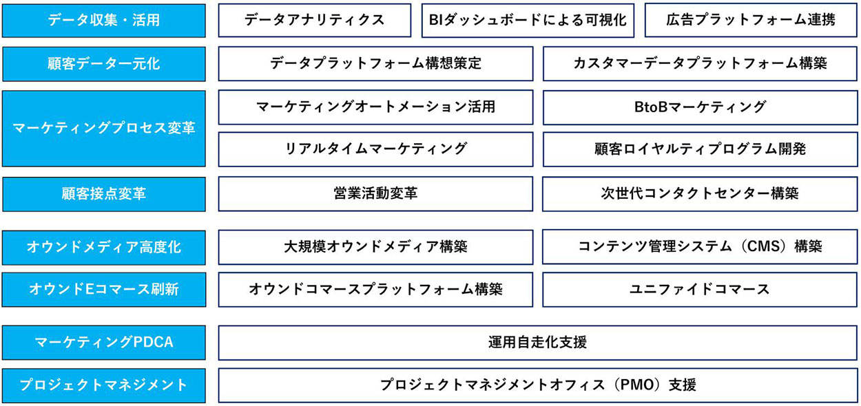 テクノロジートランスフォーメーション領域の主な提供サービス