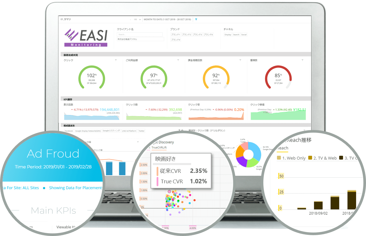 株式会社電通デジタル(本社:東京都港区、代表取締役社長:鈴木 禎久、以下電通デジタル)と、株式会社電通(本社:東京都港区、社長:山本 敏博、以下電通)は、デジタル広告の配信実績データや成果レポートをオンライン上で統合・可視化する統合マーケティングダッシュボード「EASI™ Monitoring(イージー・モニタリング)※1」の機能を拡充し、本日より本格提供を開始します。