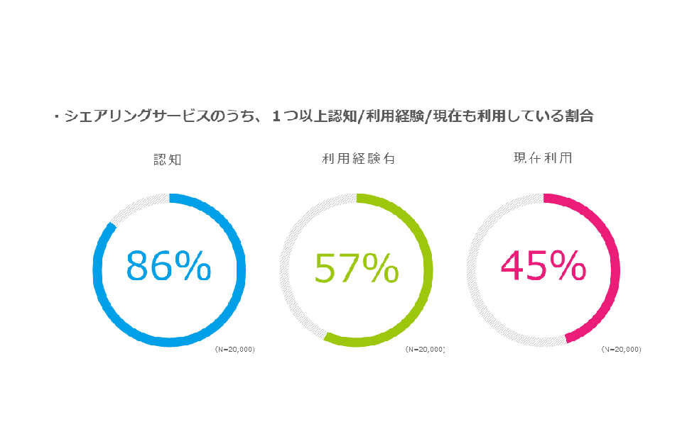 ① シェアリングサービスの認知は86%と高く、「モノのシェアリングサービス」が突出