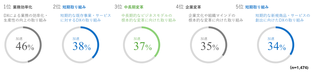 Q.新型コロナによるDXの取り組みの推進スピードの変化(TOP5)