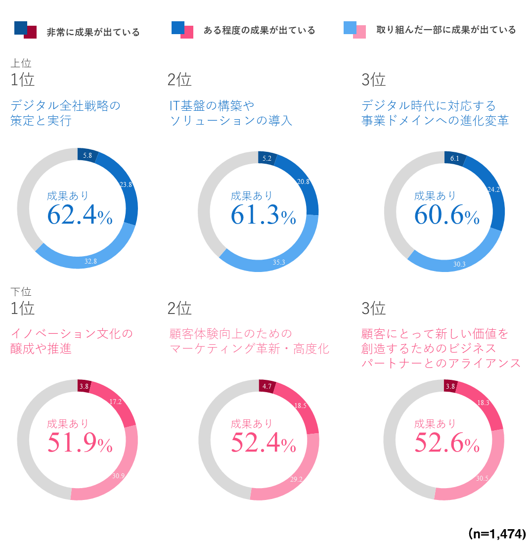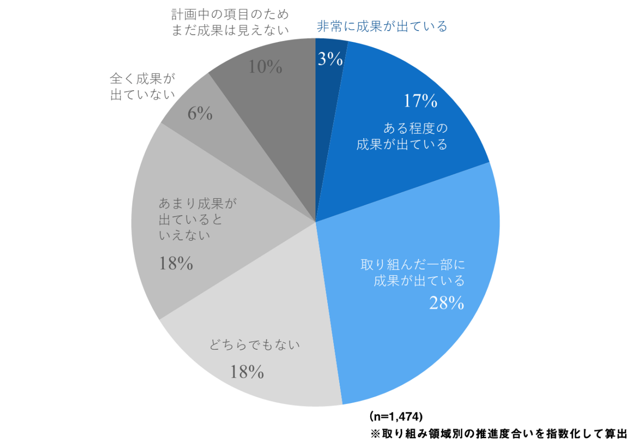ただし、約3割は「取り組んだ一部に成果が出ている」であり、限定的な成果が目立つ