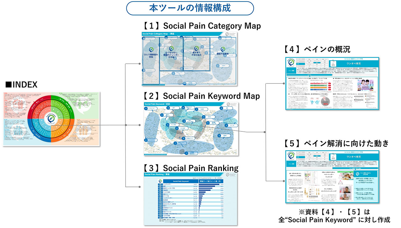 これらの情報シートを用いることで、スピード感を持って企業の業種やターゲット層と関連性の高い社会不満の探索を支援します。