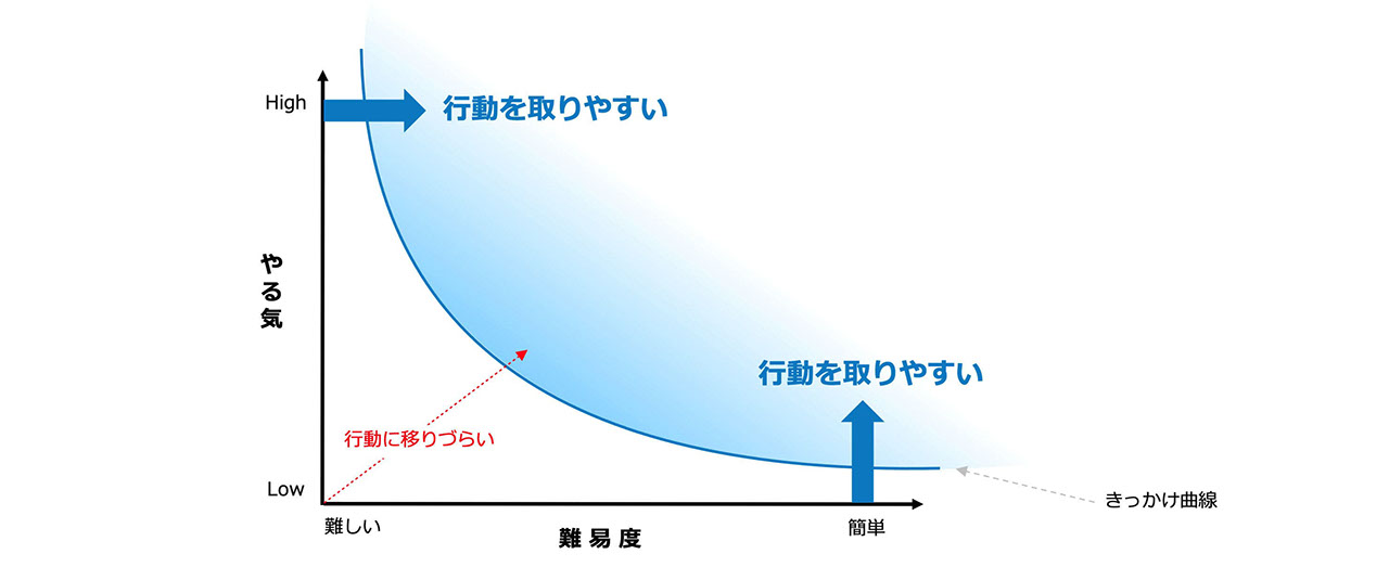 ユーザーが行動を起こすきっかけには、「やる気」と「難易度」が影響しています。「やる気」はユーザーそれぞれの思い入れに左右されるため個々に打ち手が変わりますが、「難易度」は簡単さという共通のアプローチによる対応が可能なため、多くのグローバルサービスがそのコンセプトに「シンプル」「直感的」や「滑らかな挙動」を取り入れ、難易度を下げサービス利用への障壁を取り除くことで、利用者の拡大とコンバージョン向上を図っています。
