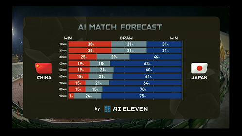 サッカーの試合中、リアルタイム映像からAIが勝敗を予測する「AI11 (AI ELEVEN)」で新たな観戦体験を提供