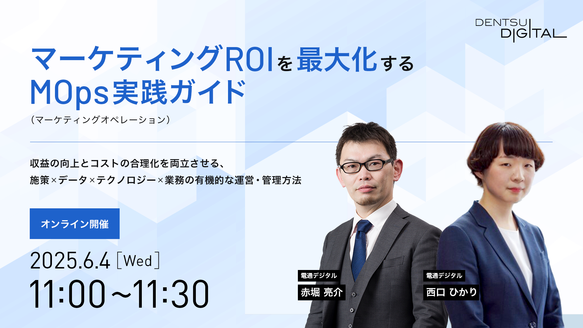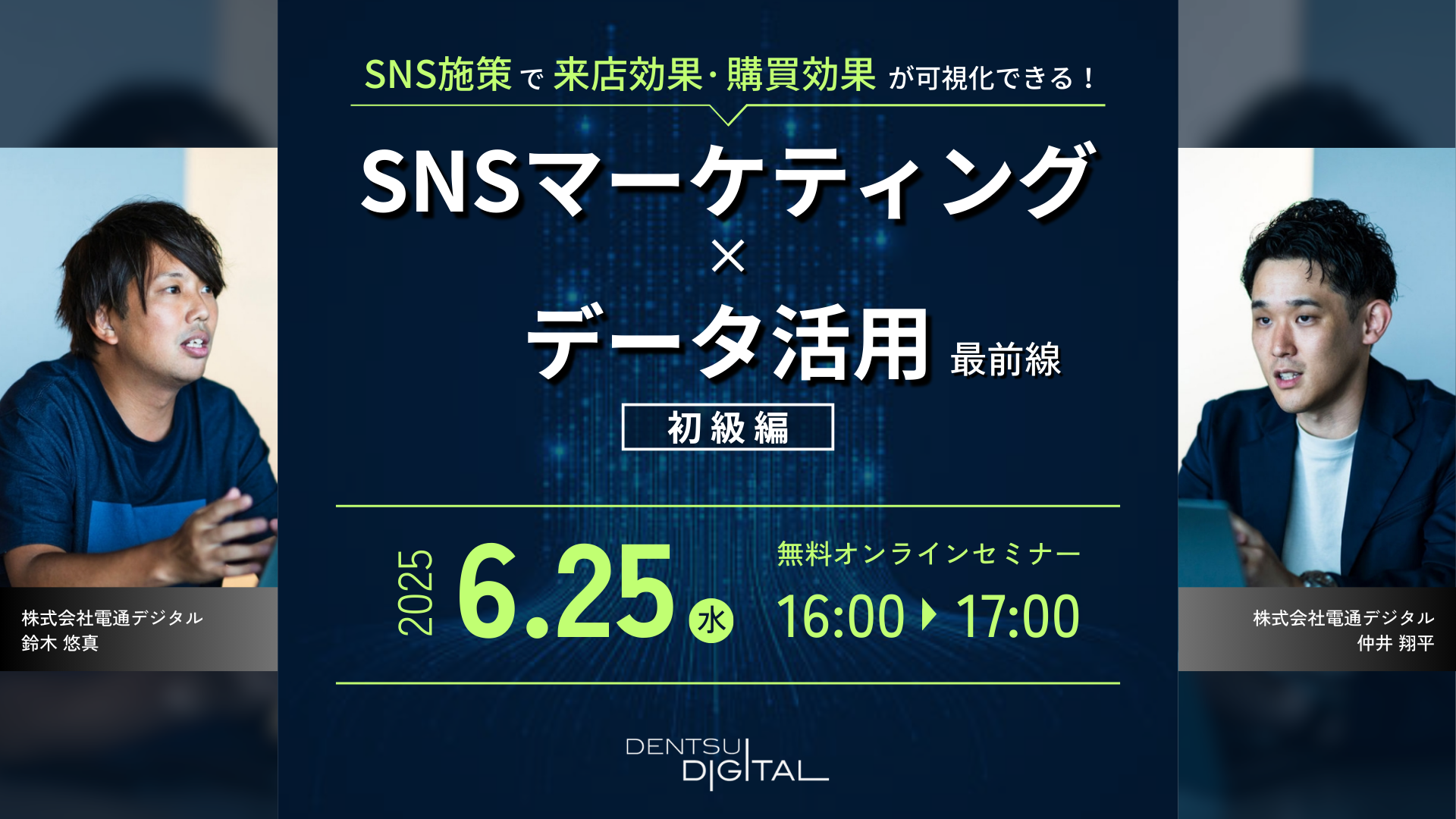 SNSマーケティング領域でデータクリーンルームを活用し、施策の効果を可視化・向上させるための実践方法を、電通デジタルのスペシャリストが解説します。SNSマーケティングの効果を可視化したい方、成果の向上に向けて何から手をつけて良いかわからない方など、SNSマーケティング施策に課題を抱えているご担当者様は、ぜひご参加ください。