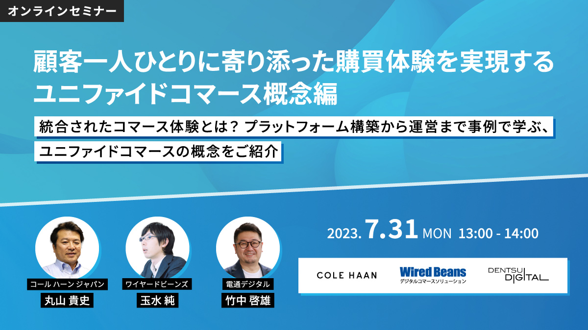 本セミナーでは、各チャネルの顧客データを活用し、継続的に顧客一人ひとりに価値あるサービスを提供するマーケティング手法「ユニファイドコマース」の概要をお伝えします。