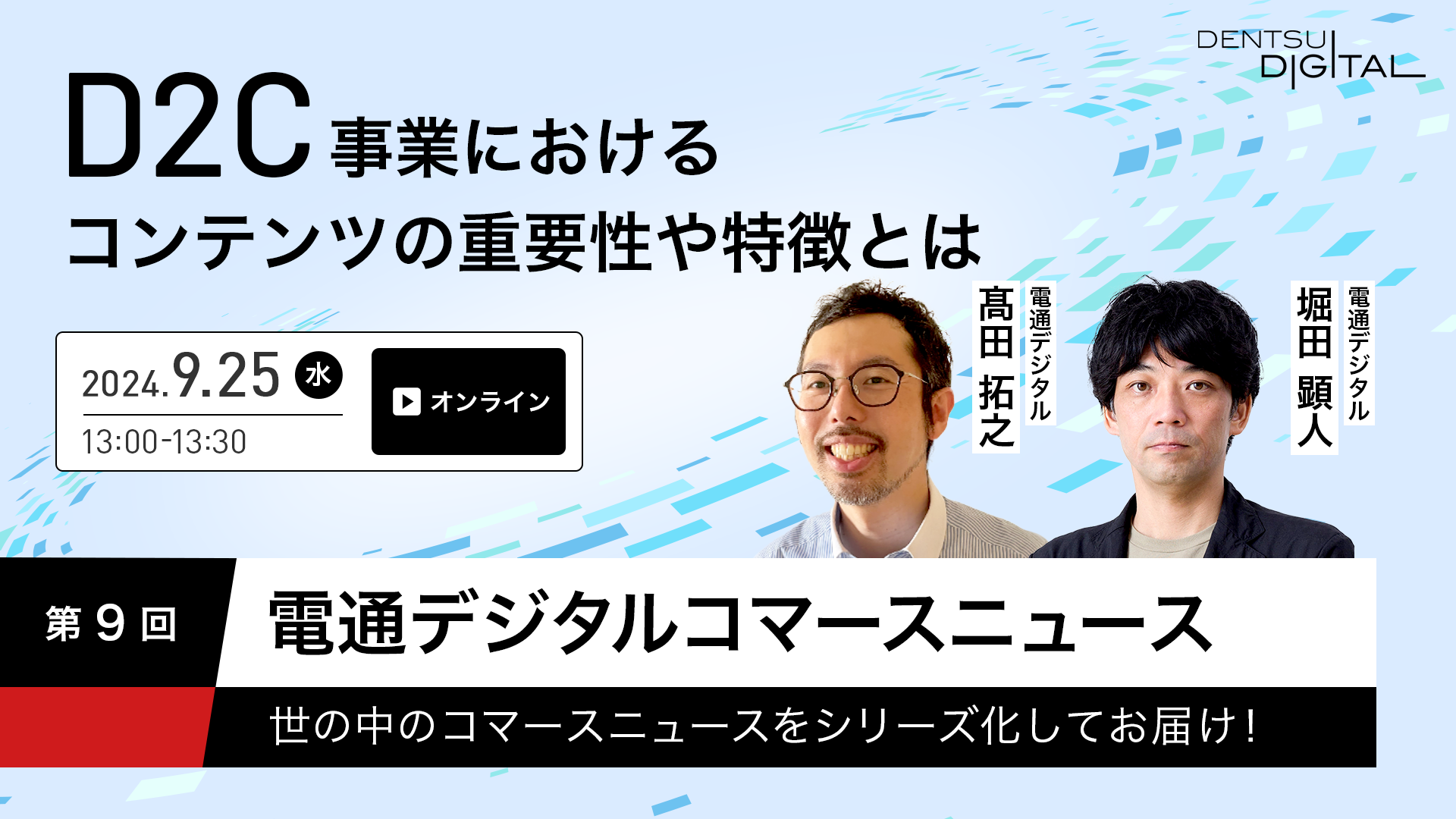 【第9回】電通デジタルコマースニュース~世の中のコマースニュースをシリーズ化してお届け!~ D2C事業におけるコンテンツの重要性や特徴とは