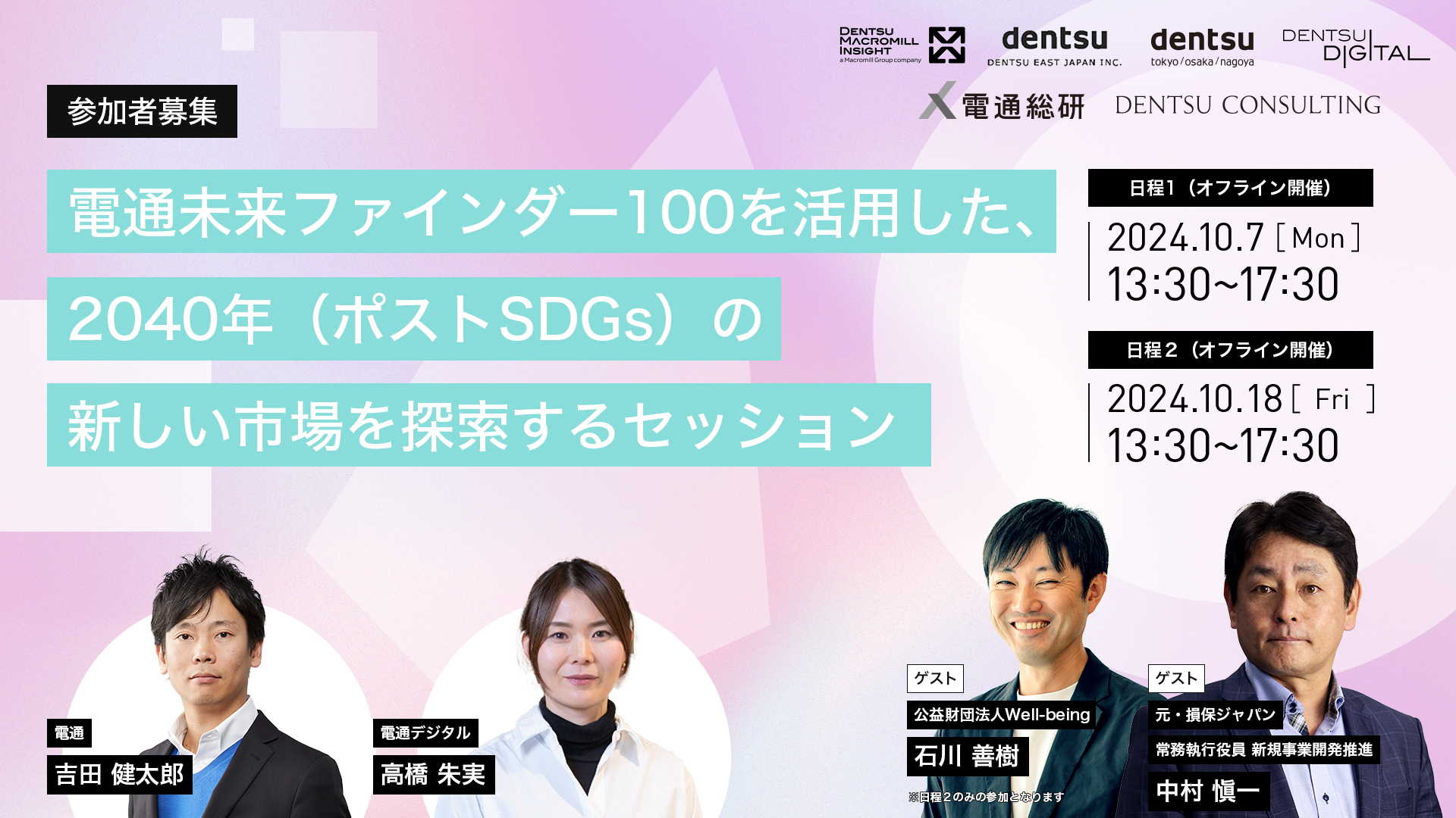 電通未来ファインダー100を活用した、2040年(ポストSDGs)の新しい市場を探索するセッション 参加者募集