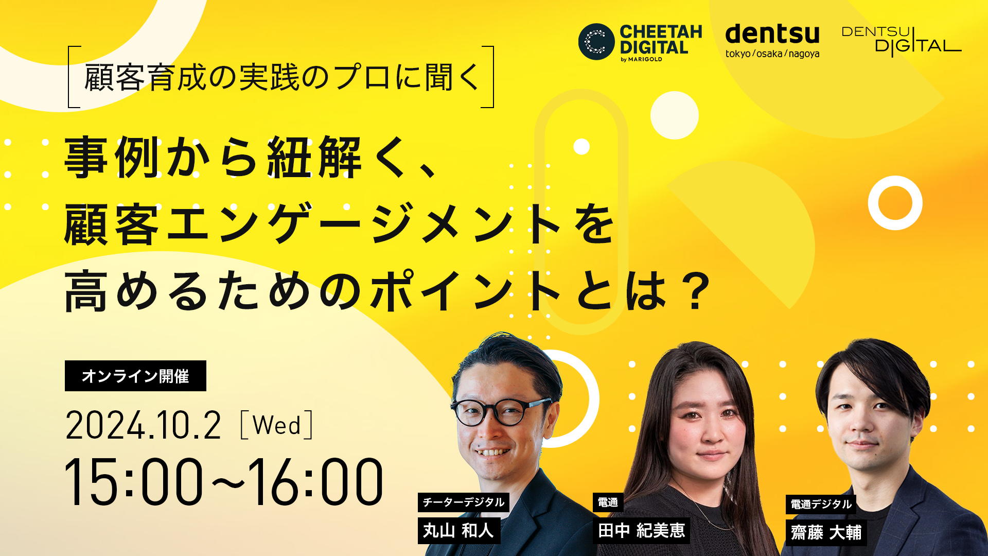 顧客との良好な関係構築には、顧客理解と顧客育成戦略が肝要です。本セミナーでは、顧客育成の実践のプロが事例を交えながら、エンゲージメントを高めるための戦略・戦術のポイントを対談形式で探ります。