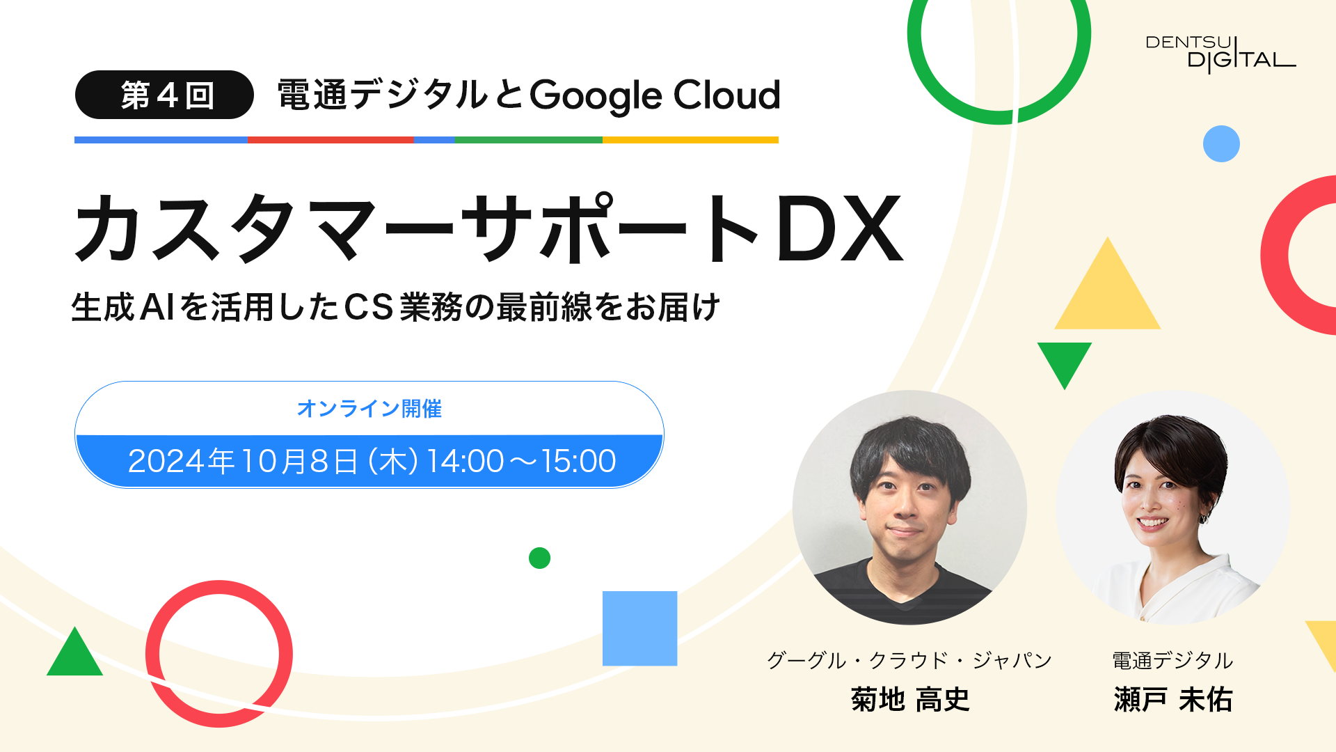 【第4回】電通デジタルと Google Cloud ~ 最新の生成AIソリューションをシリーズ化してお届け!~ カスタマーサポートDX~生成AIを活用したCS業務の最前線をお届け~