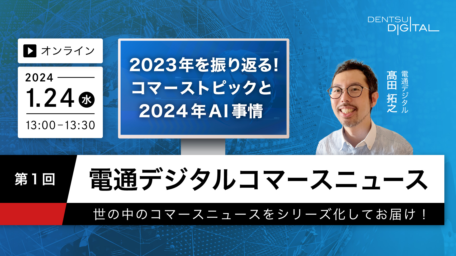 【オンデマンド視聴お申込み可】電通デジタルコマースニュース。第1回目は、コマース業界における2023年の振り返りと2024年の展望をご紹介します。