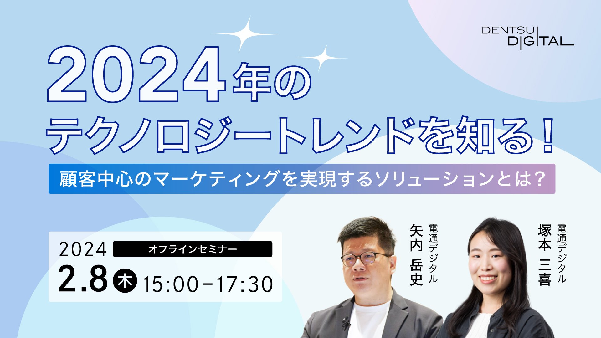 2024年がはじまり、何から手を付けようかとお悩みの方も多いのではないでしょうか。本セミナーでは、2024年に取り組むべきデジタルマーケティングのトレンドをご紹介します。
