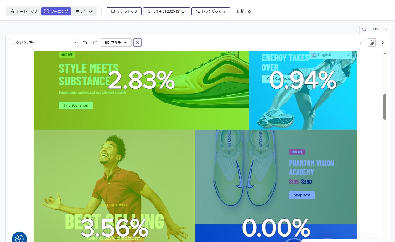 ゾーニング分析では、ユーザー導線上の課題や実際の行動体験を、直感的で分かりやすいビジュアルで可視化します。