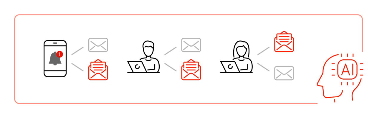 Adobe Journey OptimizerのAIがユーザーごとの通知開封傾向を分析し、もっとも効果的な配信タイミングを自動調整します。