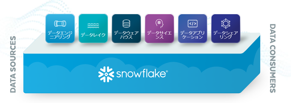 | データエンジニアリング | Snowflakeによりデータエンジニアリングは合理化され高い性能と簡素化が実現するため、顧客企業はパイプラインやインフラストラクチャの管理ではなく、データから価値を得ることに集中できます。 |