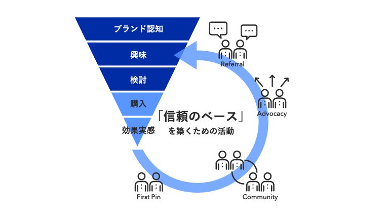 生活者の日常に浸透したプラットフォームを活用し、広告的手法によるユーザー数拡大、1to1メッセージによる理解促進や購買喚起、決済データによる効果検証・最適化をシームレスに支援